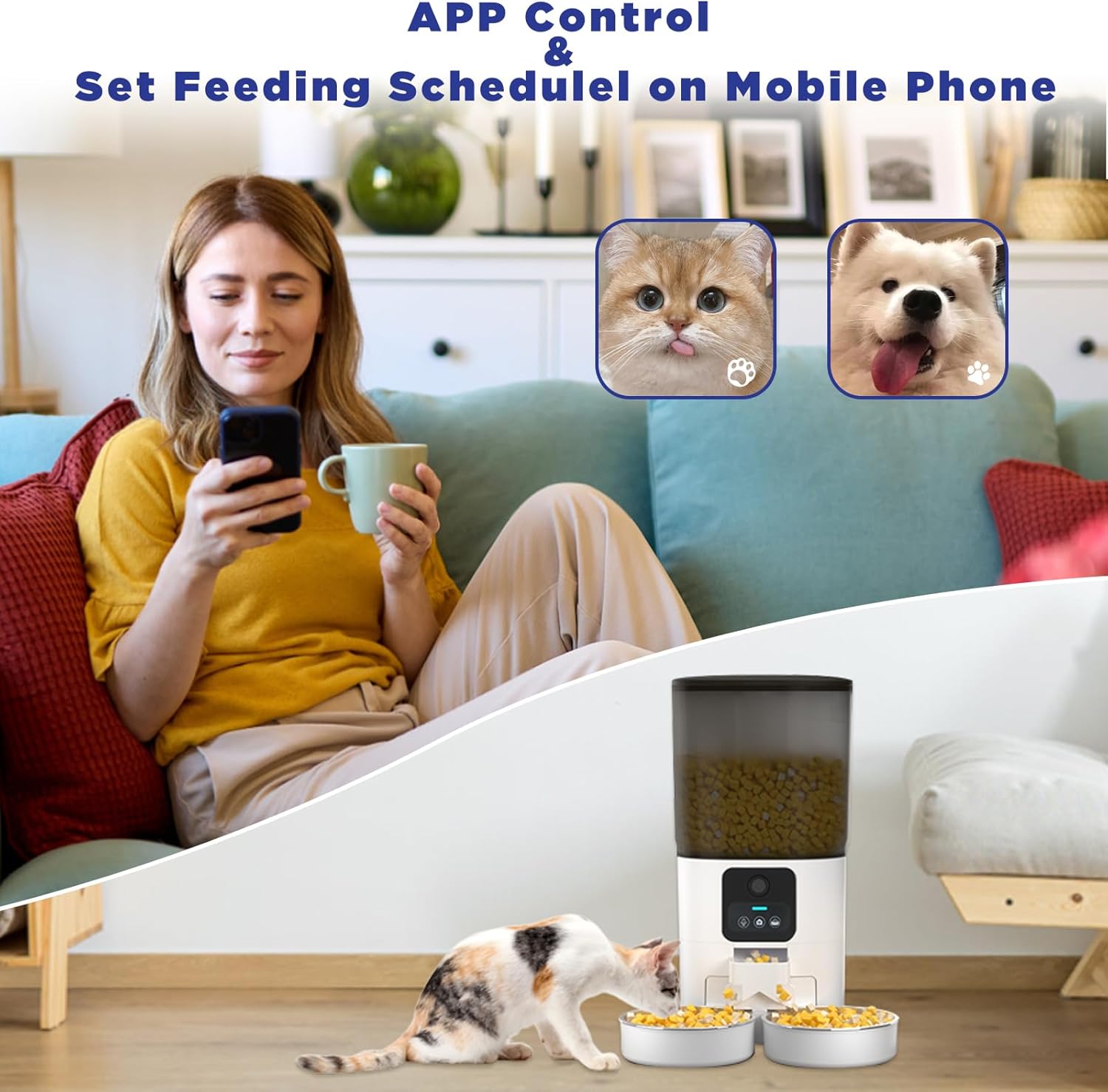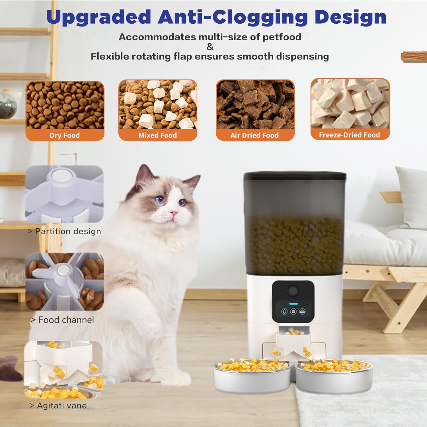 PAPIFEED Smart Dual-Pet Automatic Feeder: HD Video, WIFI, Two-Way Audio, 6LCapacity