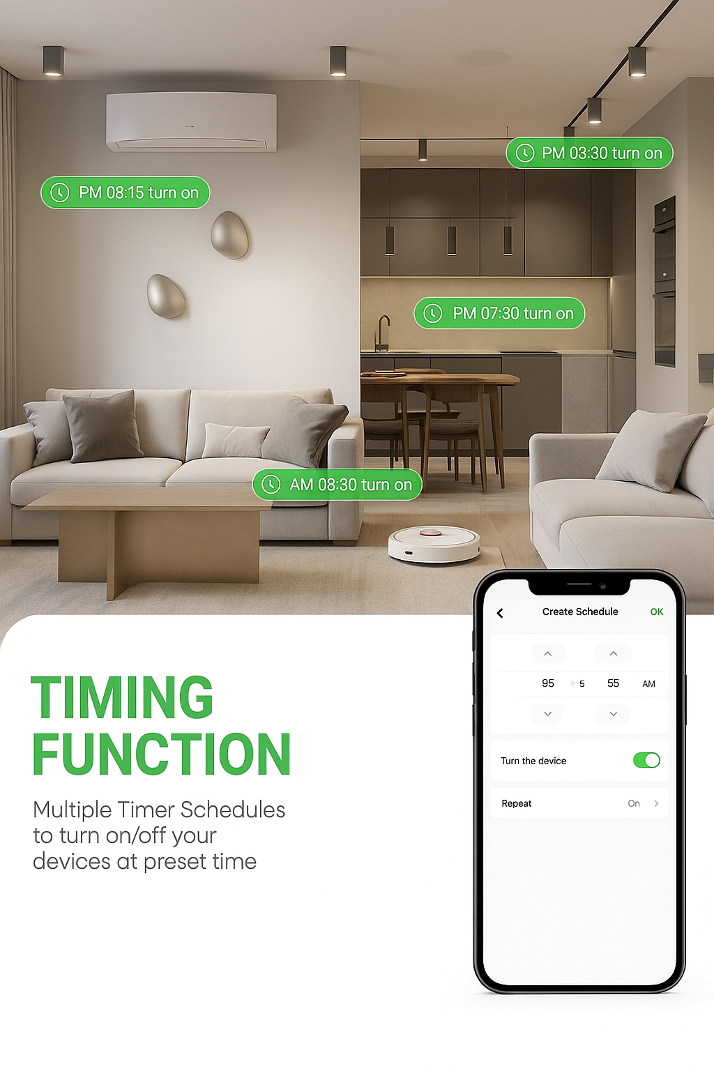 Control your appliances with ease using this smart plug, compatible with Alexa and Google Home. Monitor your energy consumption and schedule timers for a convenient experience. With its ABS material and 16A current, this plug is both safe and efficient. Plus, its compact design makes it perfect for any home or office.