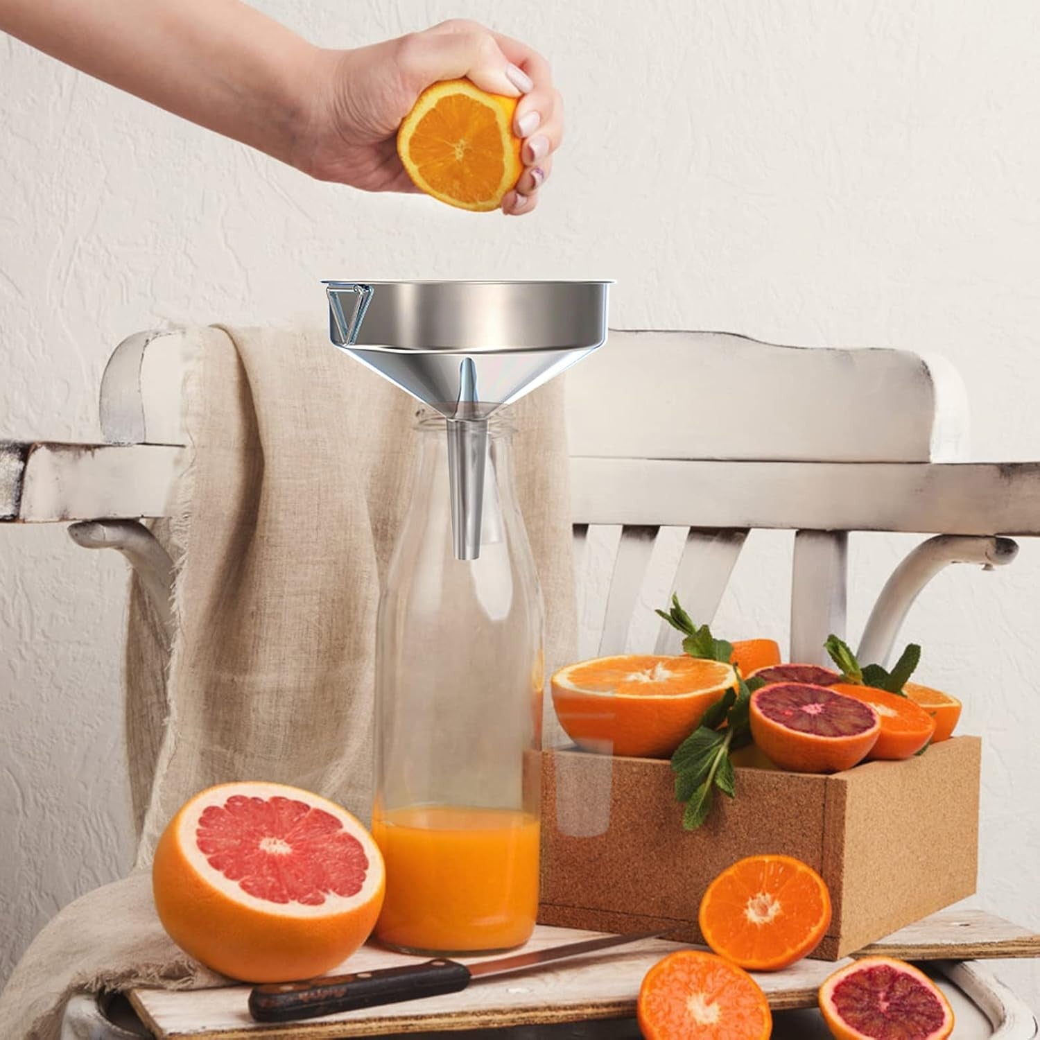 A versatile 304 stainless steel funnel set that covers every kitchen need. Four sizes (8, 10, 12, 14 cm) let you pour liquids, oils, and powders with ease. The ergonomic handle lets you hang or store them neatly.