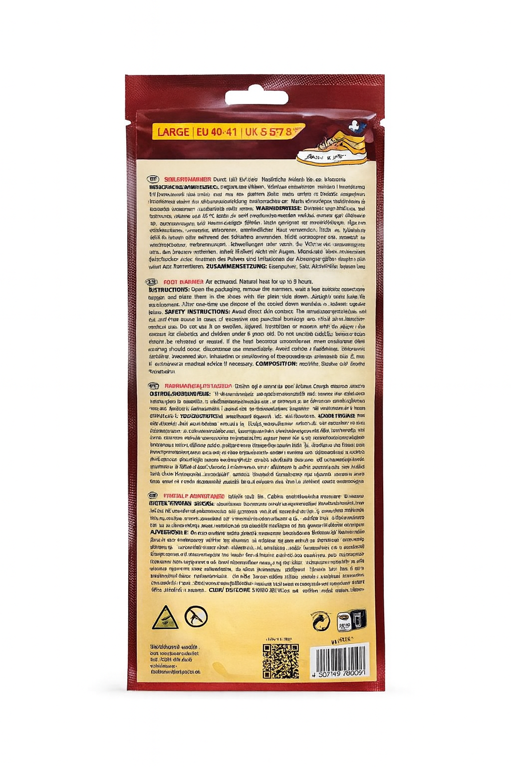 Keep your feet wonderfully warm with Thermopad Foot Warmers, designed for ultimate comfort in cold conditions. These air-activated sole warmers provide immediate, soothing heat from 100% natural ingredients. Enjoy a consistent average temperature of 37°C for up to 8 hours, perfect for skiing, sports events, or any winter activity. Their slender design fits comfortably into any boot, ensuring your toes stay toasty all day long.