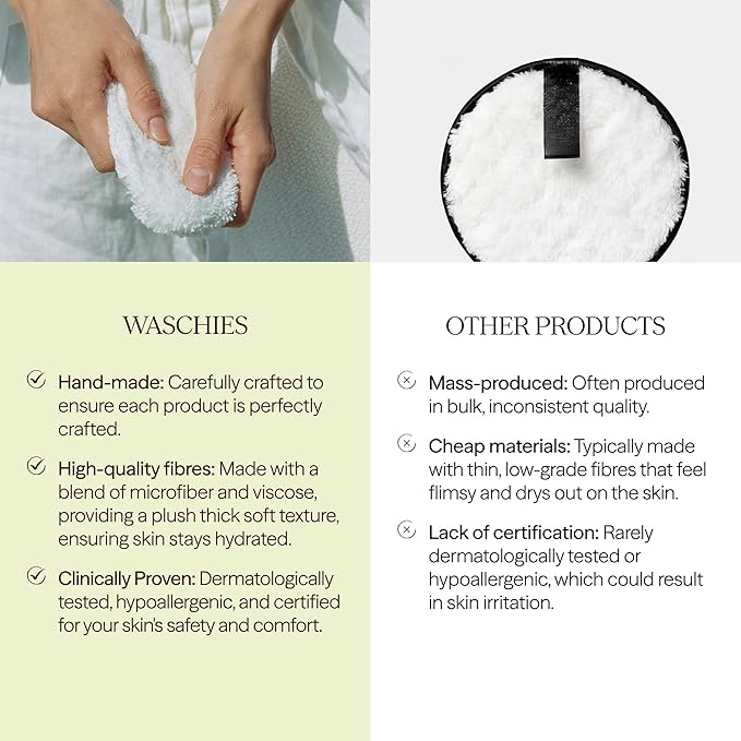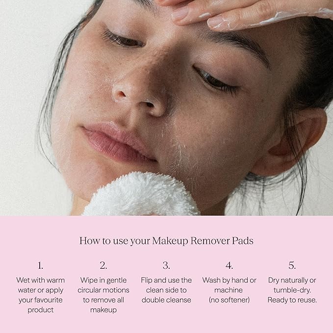 These ultra‑soft, hypoallergenic pads melt makeup away with just warm water. Their double‑layer micro‑fibre and viscose blend leaves skin feeling fresh and clean. Reusable up to 95 °C, they cut waste and save money over disposable wipes. Ideal for all skin types, from oily to sensitive, and perfect for teens and adults alike.