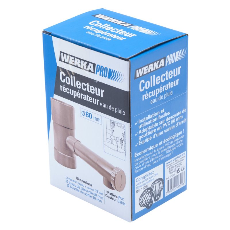 This WERKA PRO rainwater collector easily attaches to your 80mm PVC downpipes, efficiently gathering water for later use. Its simple and quick installation includes a convenient stopcock for effortless flow control. Crafted from durable PVC, this sand-colored collector blends seamlessly with your outdoor aesthetics. With a 19 cm pipe length and 30 mm outlet, it ensures optimal water collection for your storage systems.