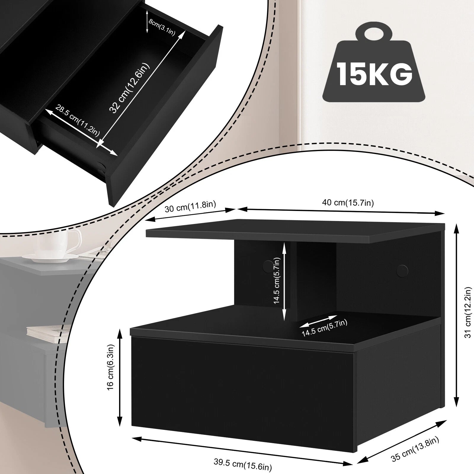 - Tags: Black nightstand, Created by product upload, Drawer nightstand, Floating nightstand, Modern bedroom furniture, Space saving furniture, Wall mounted nightstand, Wall shelf nightstand, Woltu nightstand