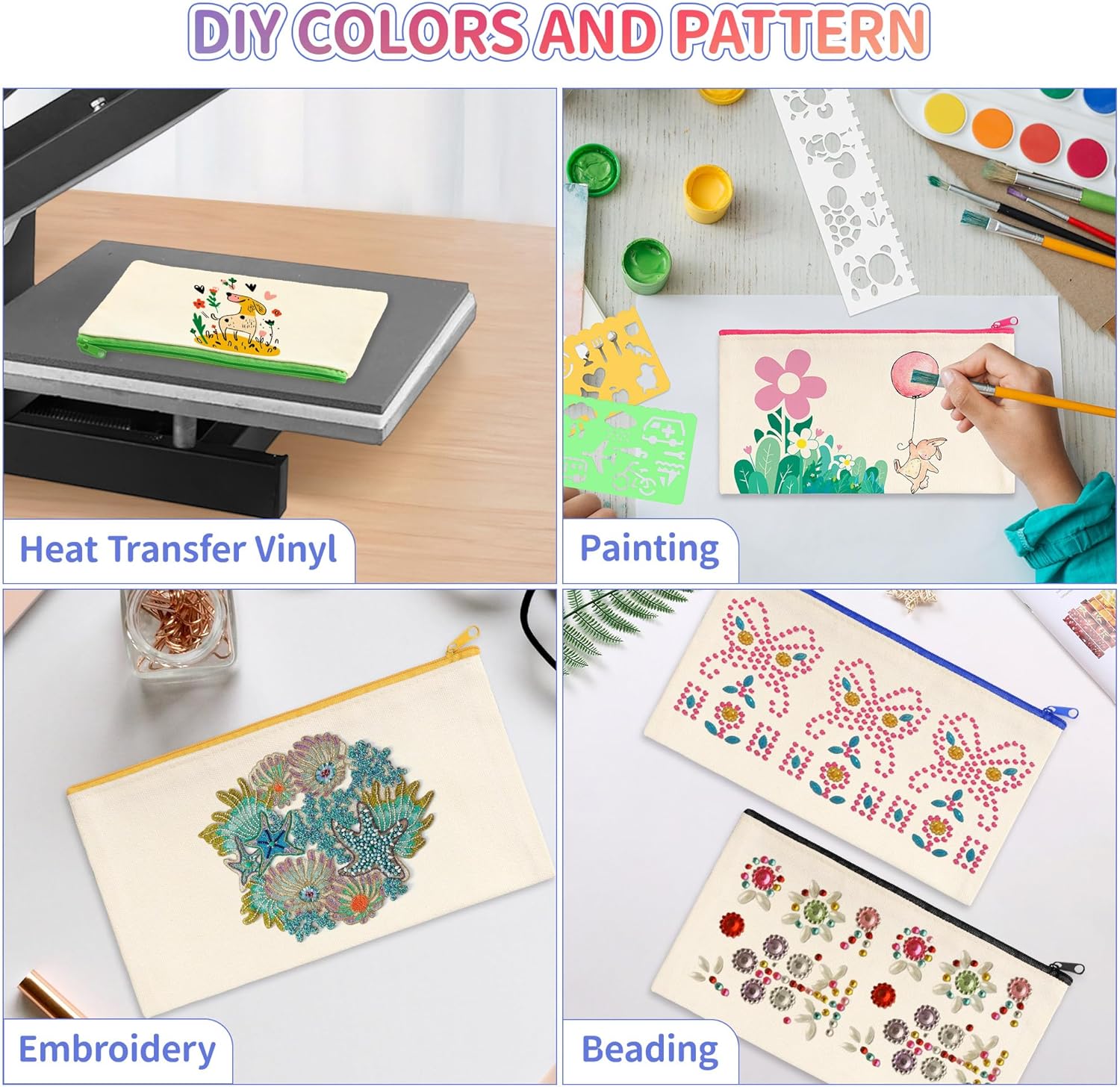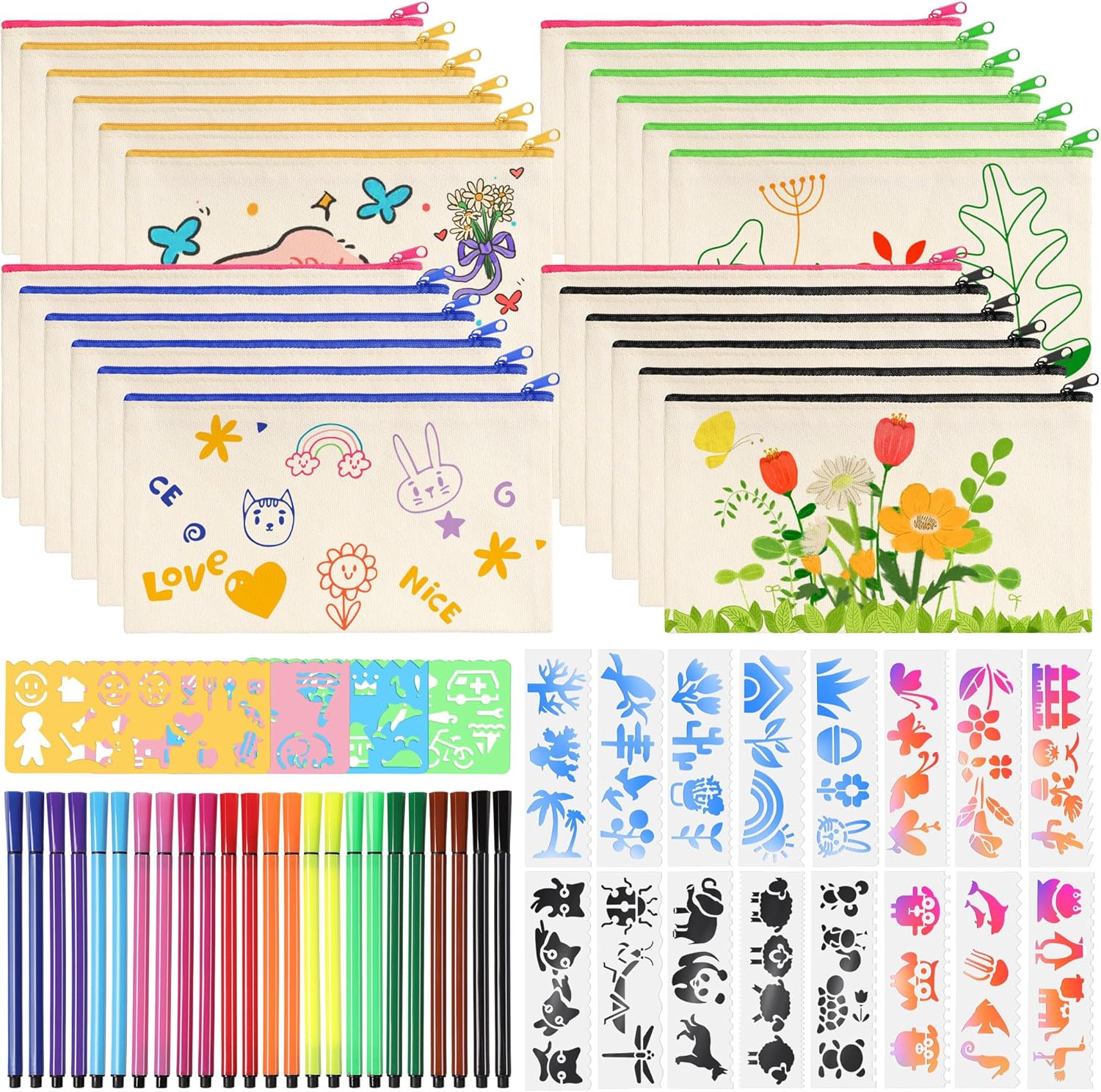 Unleash a burst of color with 24 blank canvas tote pencil cases ready for your artistic flair. Each bag comes with a sturdy metal zipper, 24 vibrant markers, and 20 fun stencils to spark endless designs. The durable cotton fabric holds up to daily use, perfect for school, travel, or a stylish cosmetic pouch. Ideal gift for kids, teens, or anyone who loves a hands‑on creative adventure.