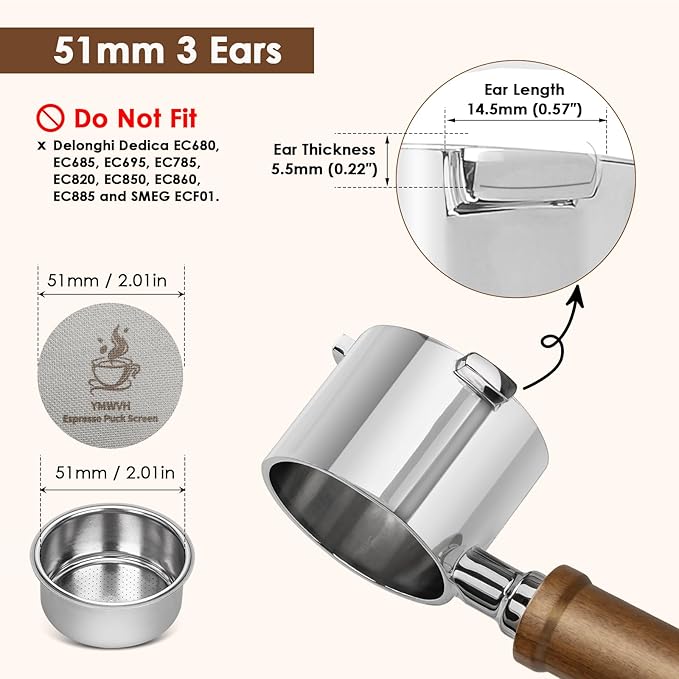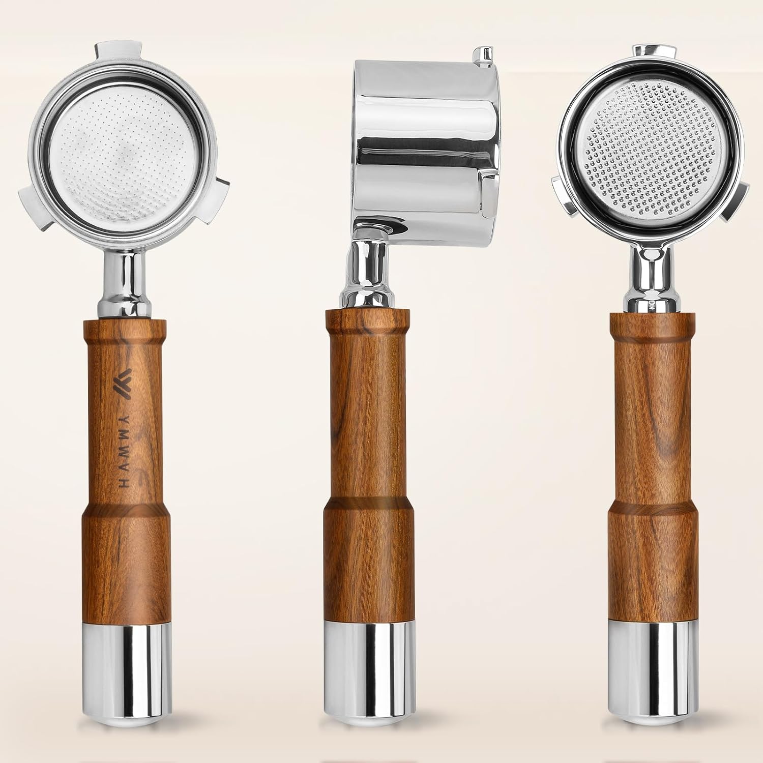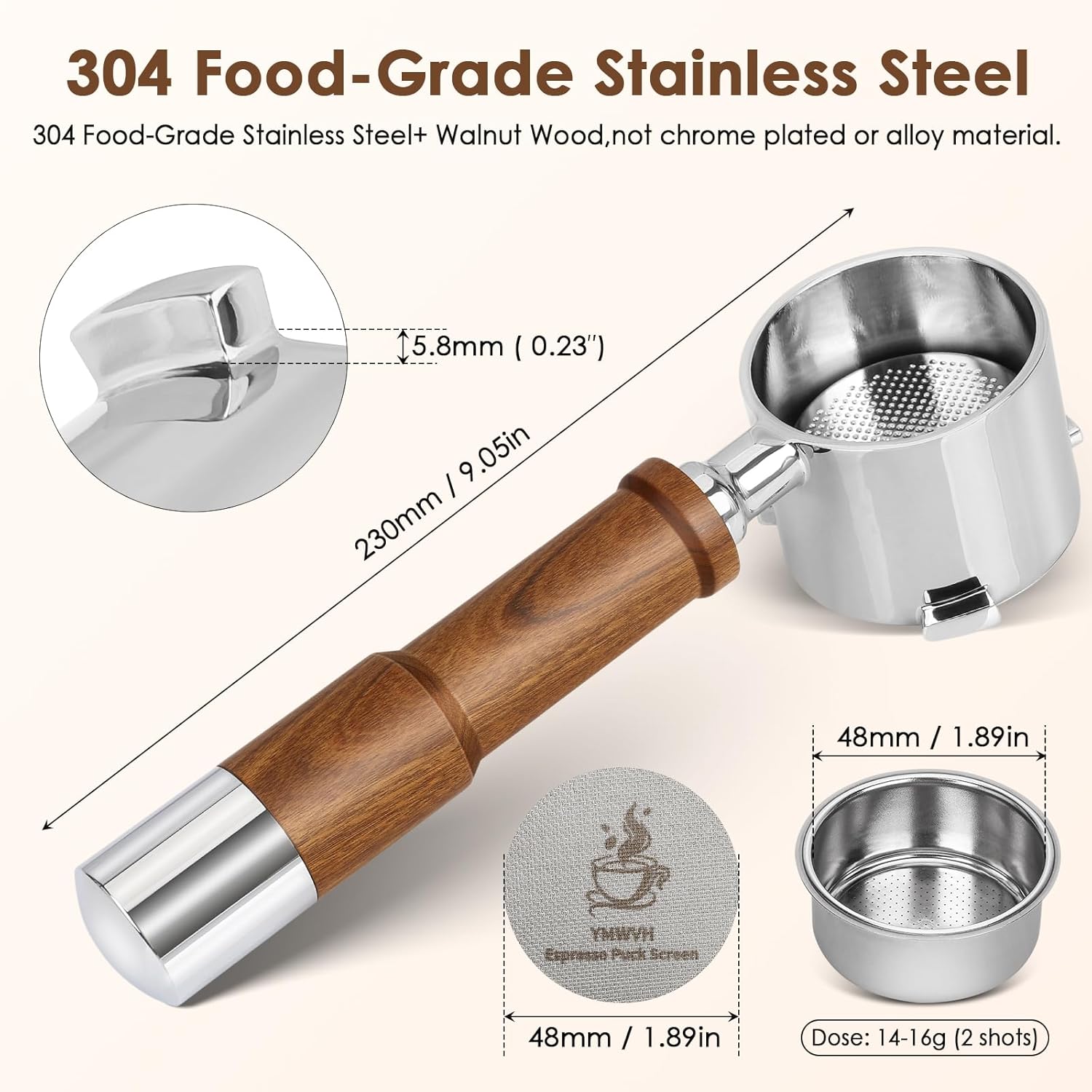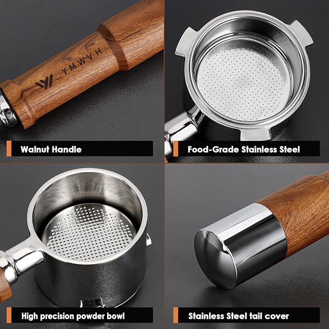 YMWVH 51mm Bottomless Portafilter with Walnut Handle for DeLonghi
