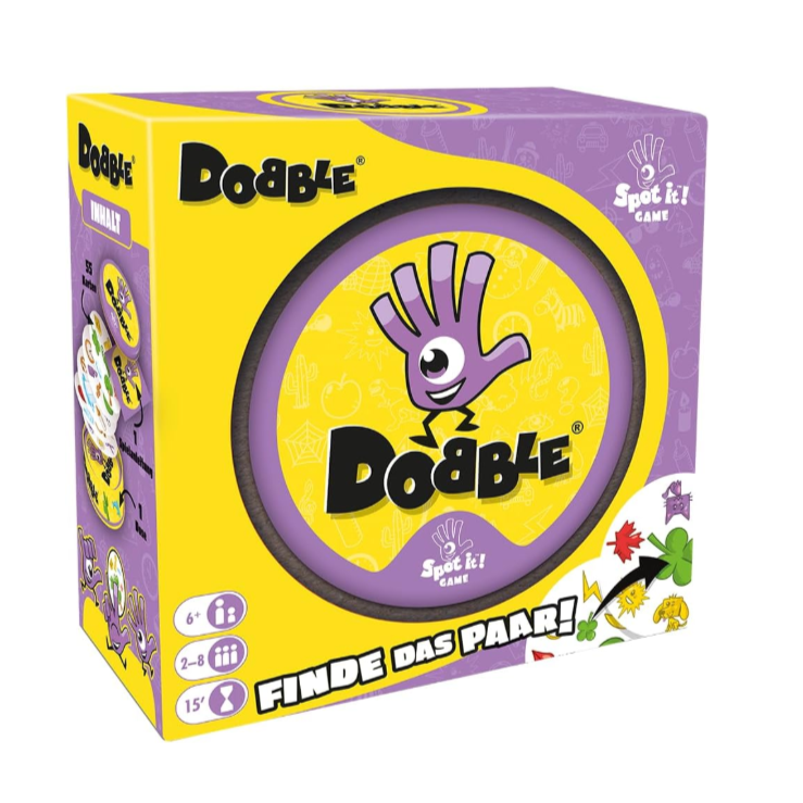 - Tags: 2-8 players, Card game, Created by product upload, Dobble, Eco sleeves, Family game, Fast reaction, German language, Portable, Travel game